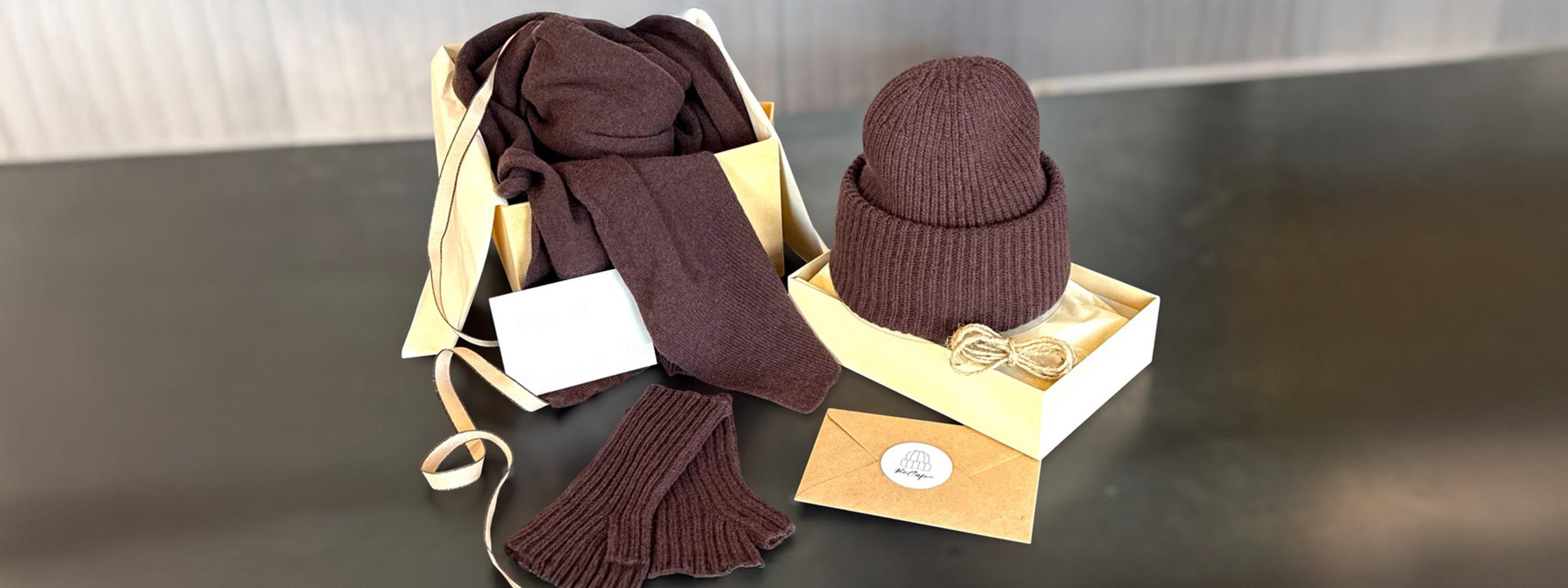- Accessori BeCap in lana e cashmere, confezionati in packaging eleganti e sostenibili