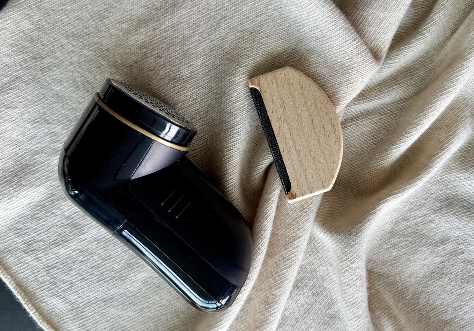 - Rimuovere il pilling (i piccoli pallini) con un pettine specifico, o un rasoio per tessuti delicati, con delicatezza.